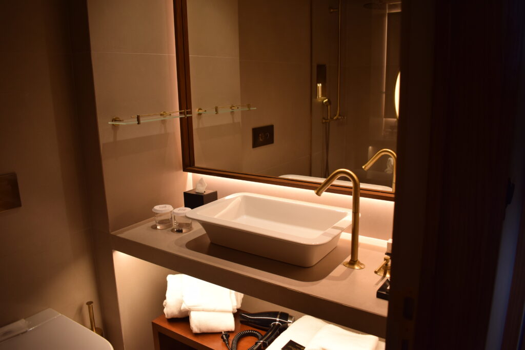 Hotellets stil var også noget særligt, mørke, elegante farver kombineret med guld og messingdetaljer, som gav en gennemført luksusstemning. Oven i det hele var personalet sødt og imødekommende, omgivelserne flotte, og både service og mad gjorde opholdet til en særlig forkælelse.
