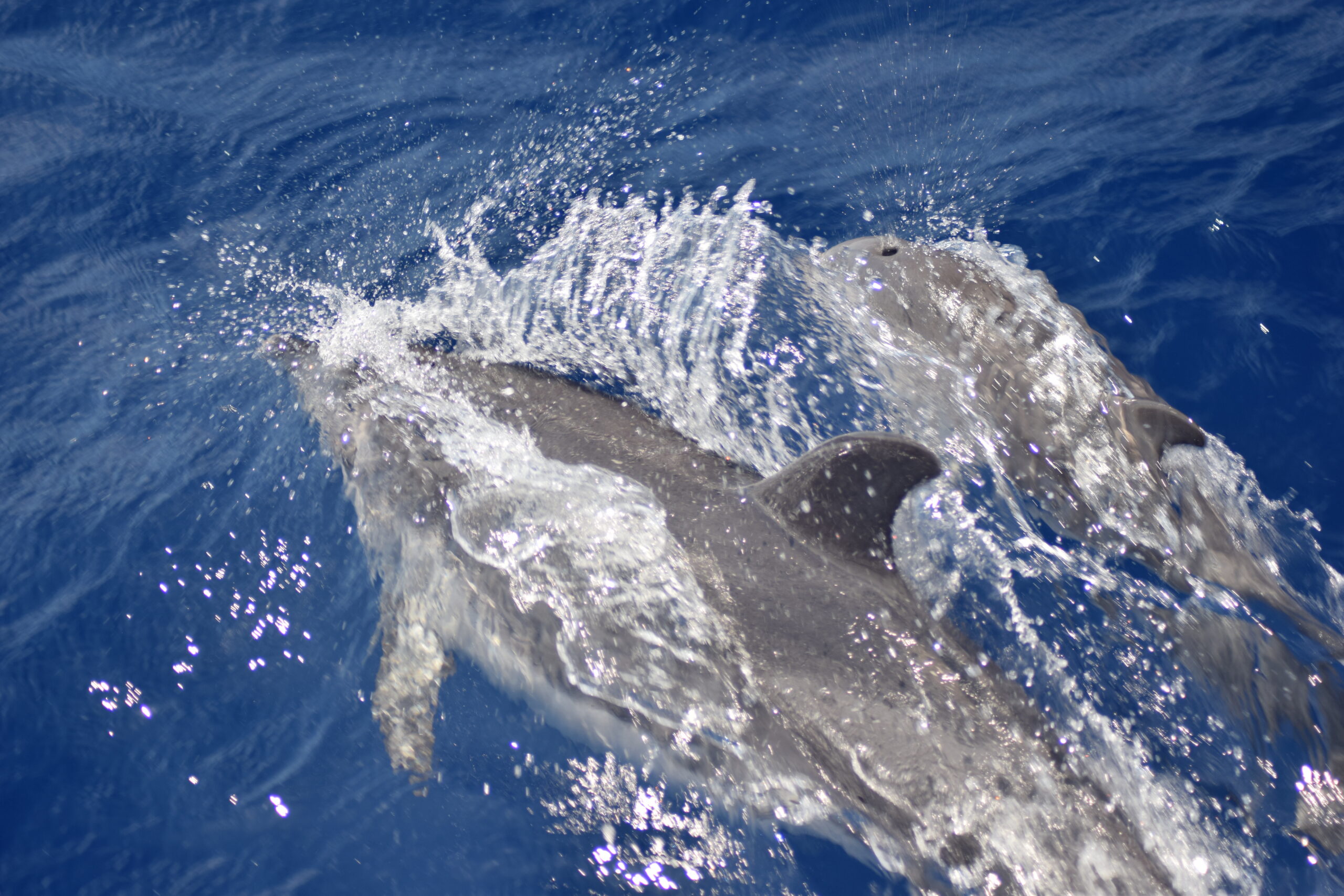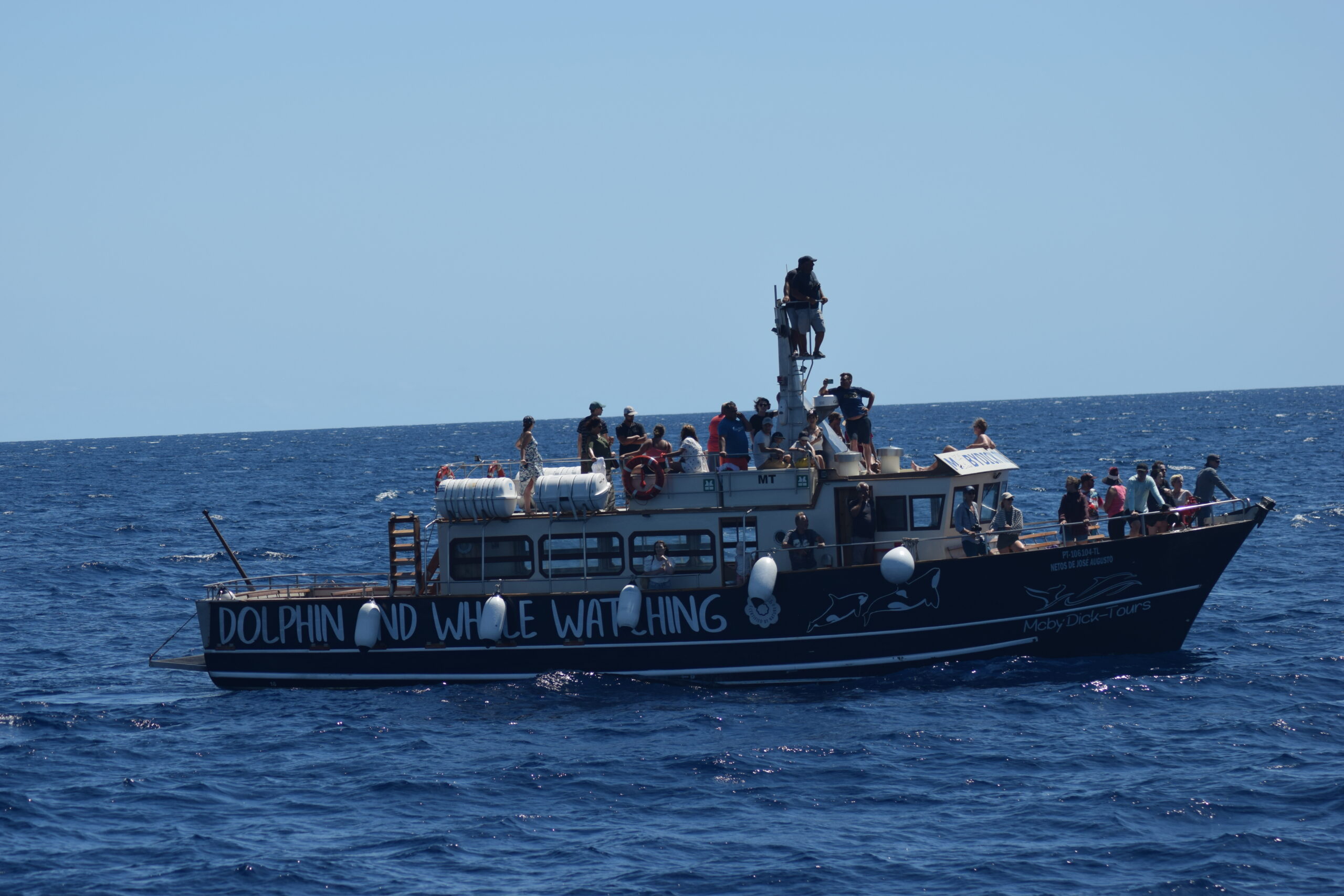 Vi tog også på hvalsafari på Azorerne, og det var en af de ture, hvor man virkelig mærker, hvor tæt naturen er herude i Atlanterhavet. På turen så vi mange delfiner, der fulgte båden og surfede på bølgerne, og indimellem dukkede de større oplevelser også op, vi så både kaskelothvaler og spækhuggere, ud over alle de legende delfiner, der gjorde hele turen helt fantastisk.