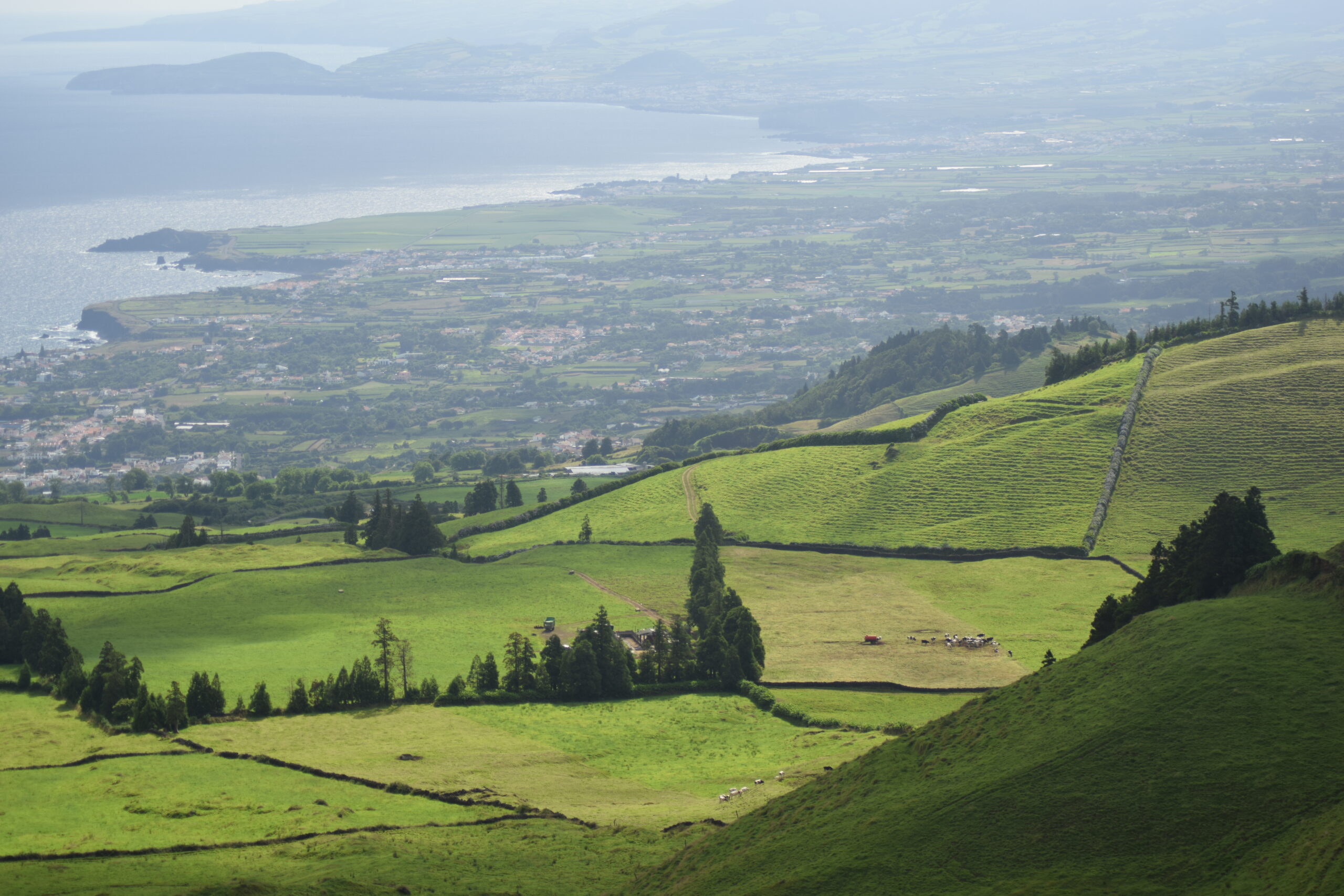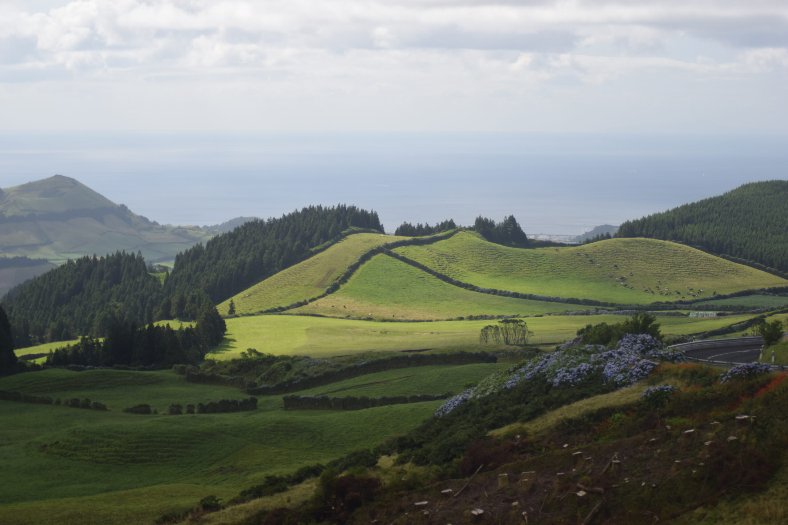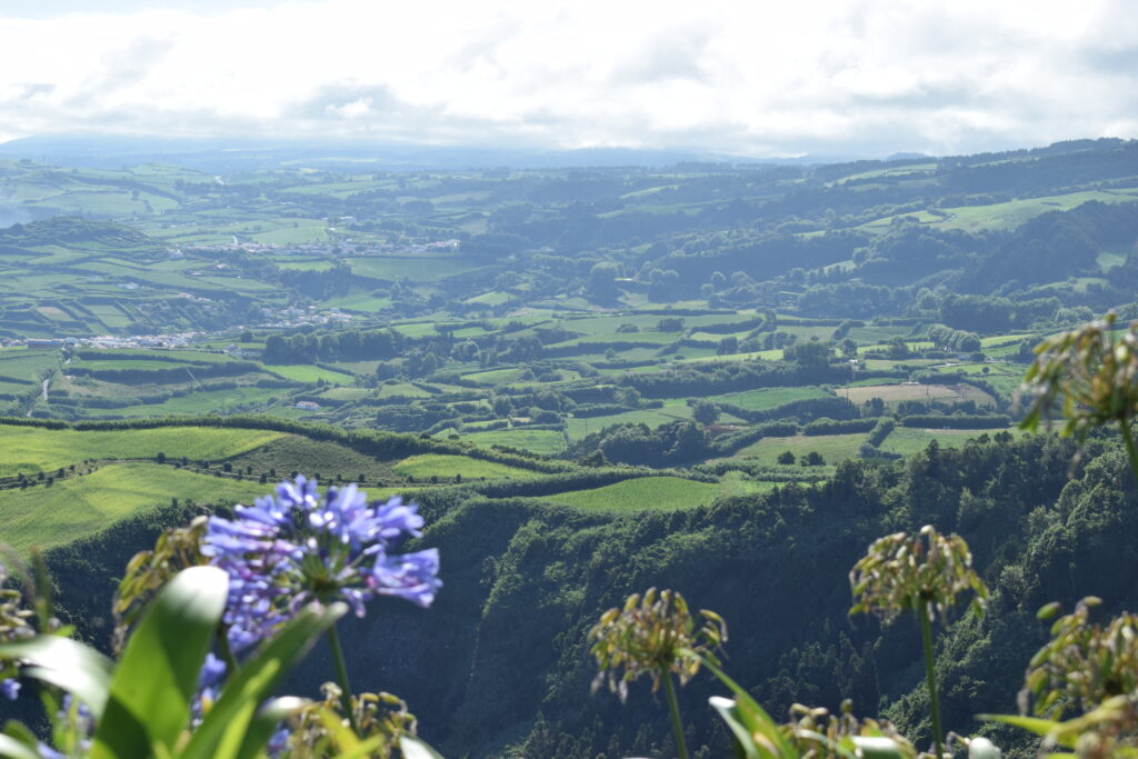 På vores køreture rundt på São Miguel fik vi virkelig set, hvor grøn og varieret naturen på Azorerne er, men kratersøer i alle nuancer (bl.a. de berømte tvillingesøer ved Sete Cidades og den turkise Lagoa do Fogo), bølgende grønne bakker med udsigt til havet, og masser af blomster langs vejene, især hortensiaer og rhododendron. Vi kom også forbi en ananasfarm, som er en sjov og meget azorisk, lille oplevelse.
