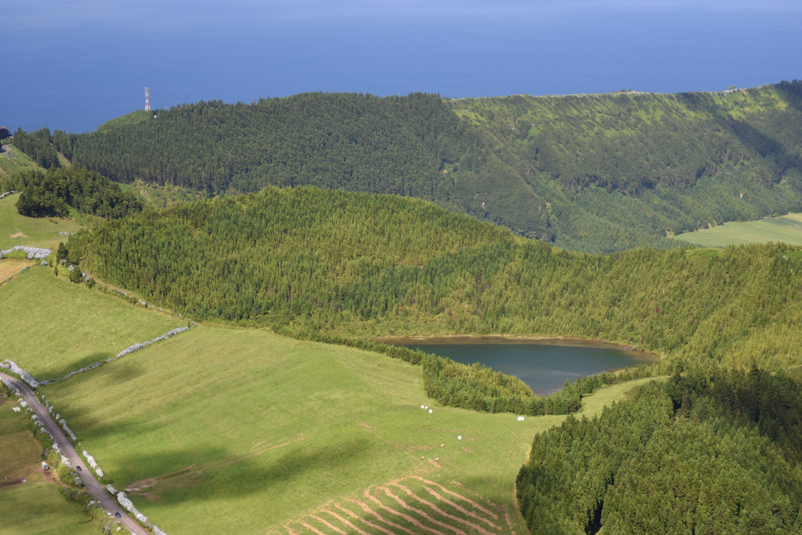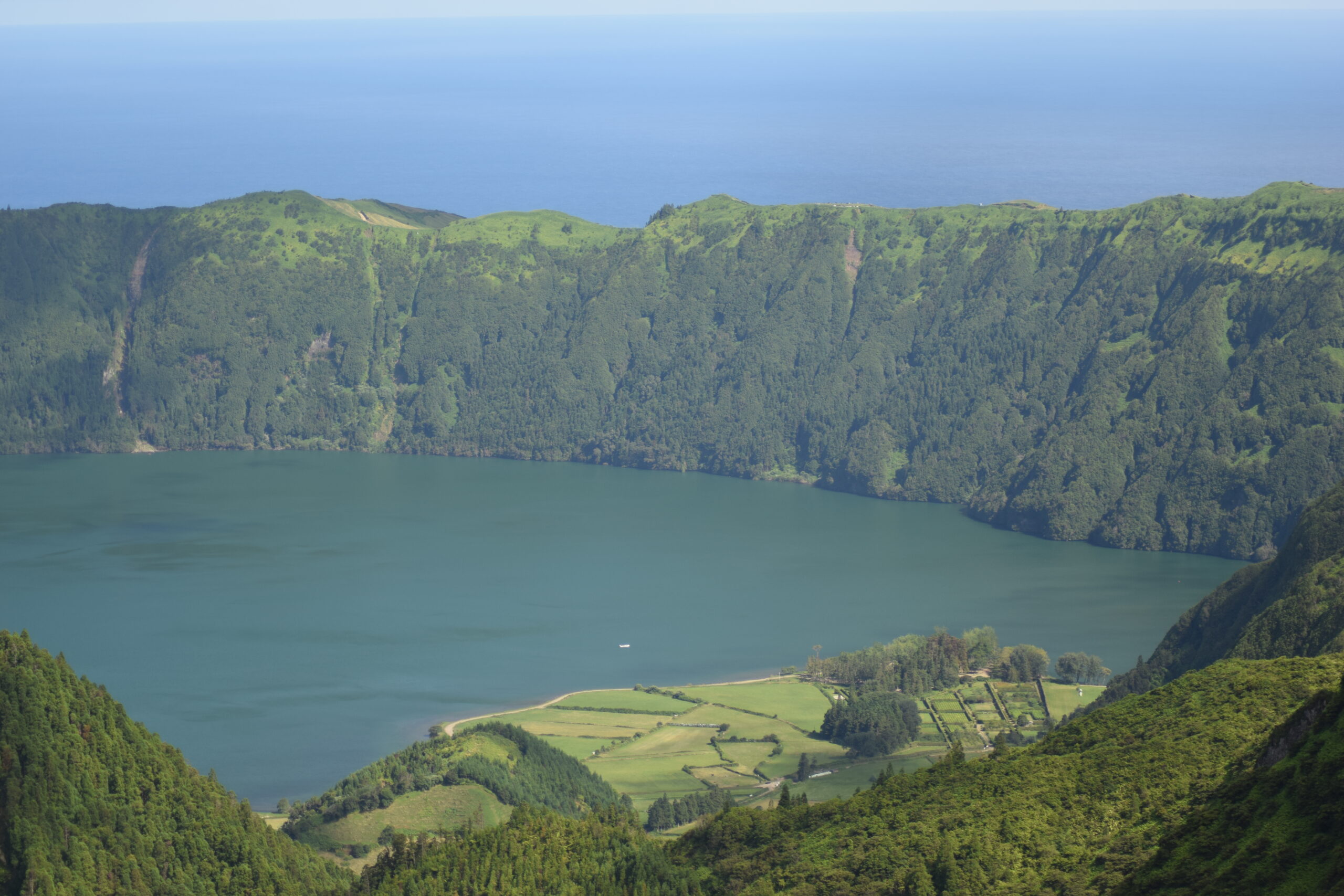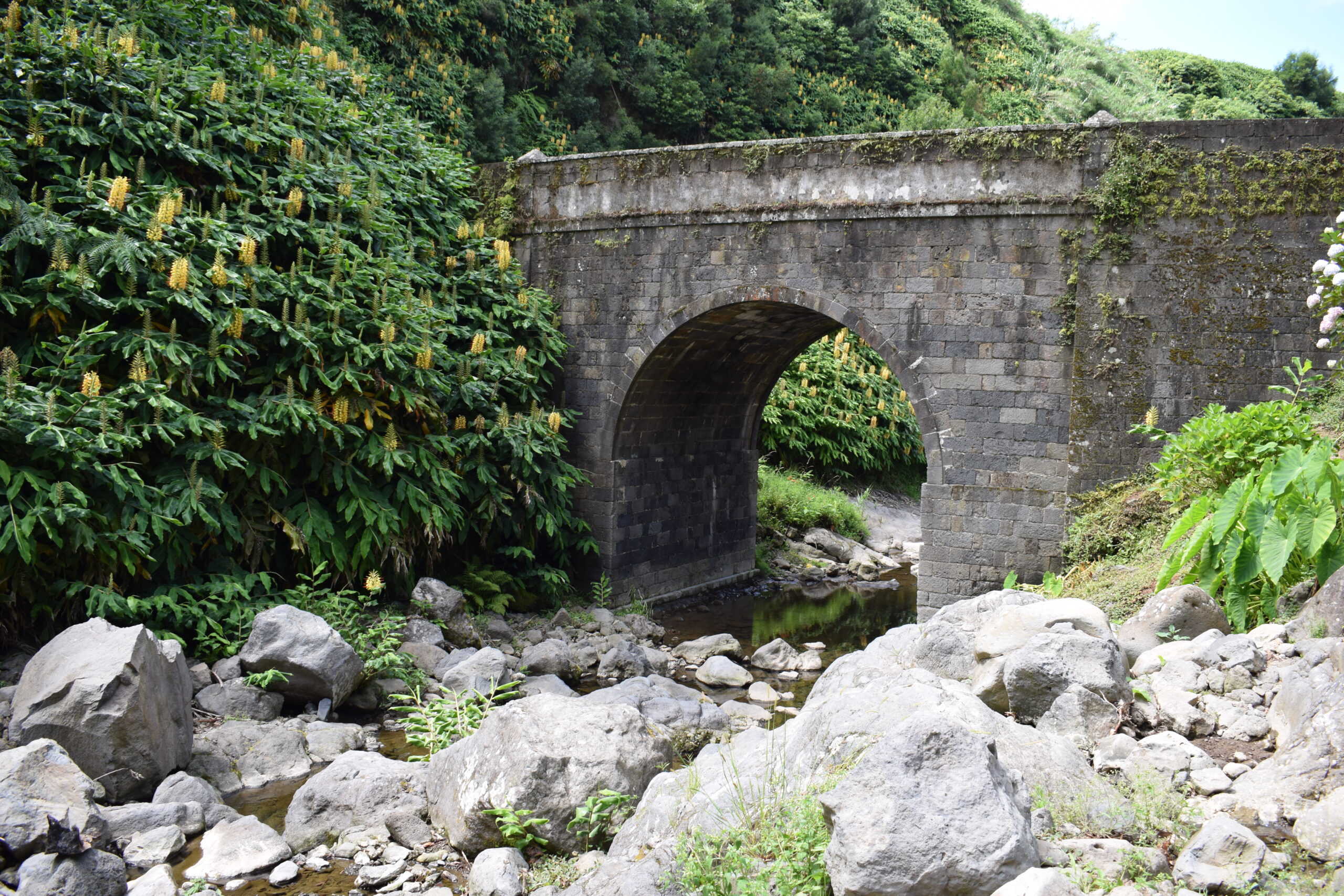 På vores køreture rundt på São Miguel fik vi virkelig set, hvor grøn og varieret naturen på Azorerne er, men kratersøer i alle nuancer (bl.a. de berømte tvillingesøer ved Sete Cidades og den turkise Lagoa do Fogo), bølgende grønne bakker med udsigt til havet, og masser af blomster langs vejene, især hortensiaer og rhododendron. Vi kom også forbi en ananasfarm, som er en sjov og meget azorisk, lille oplevelse.