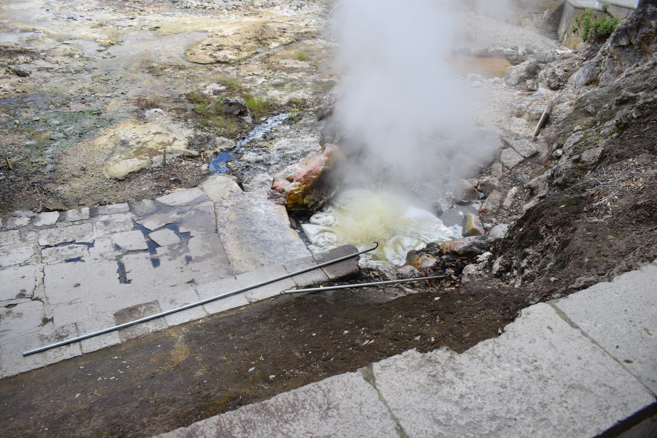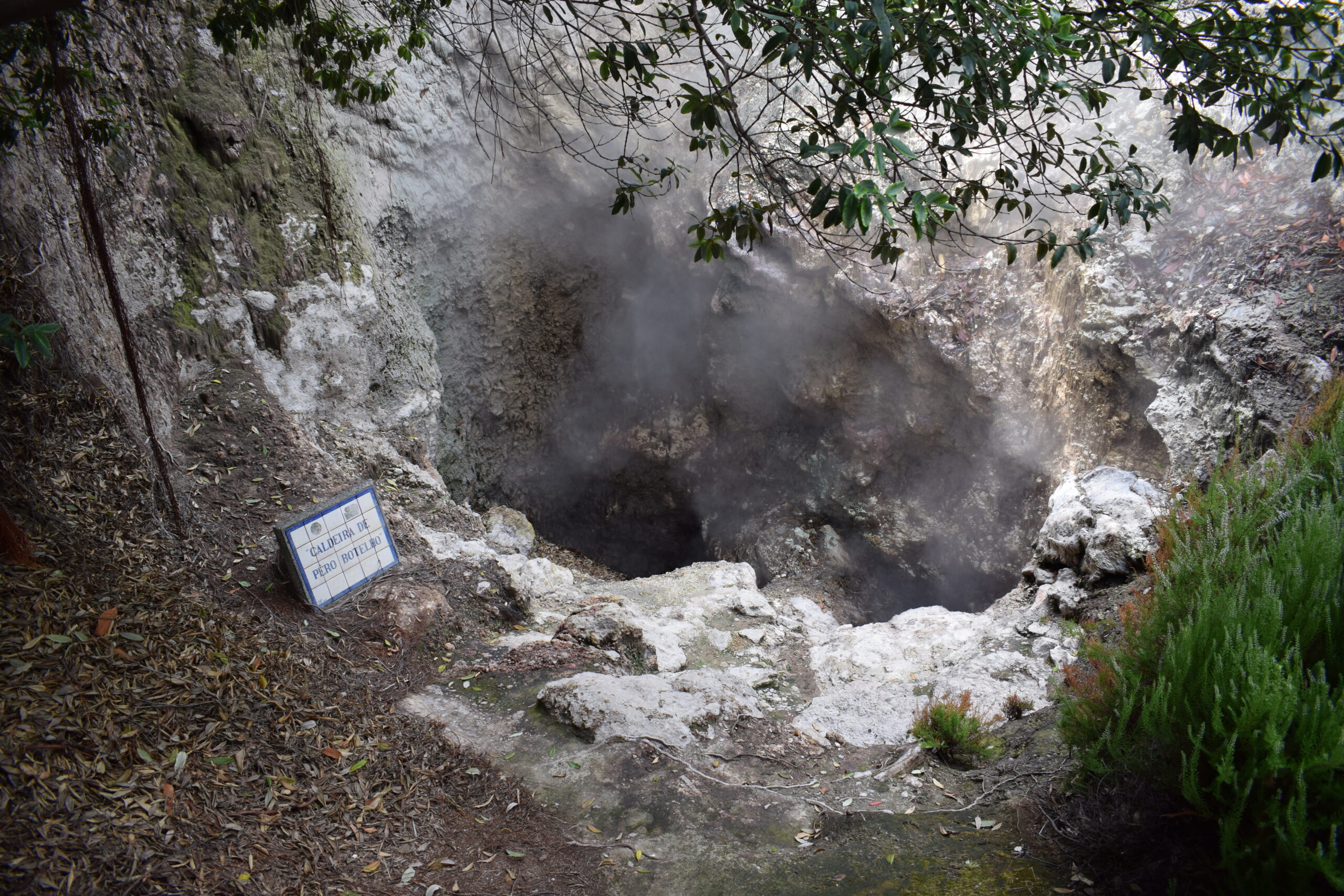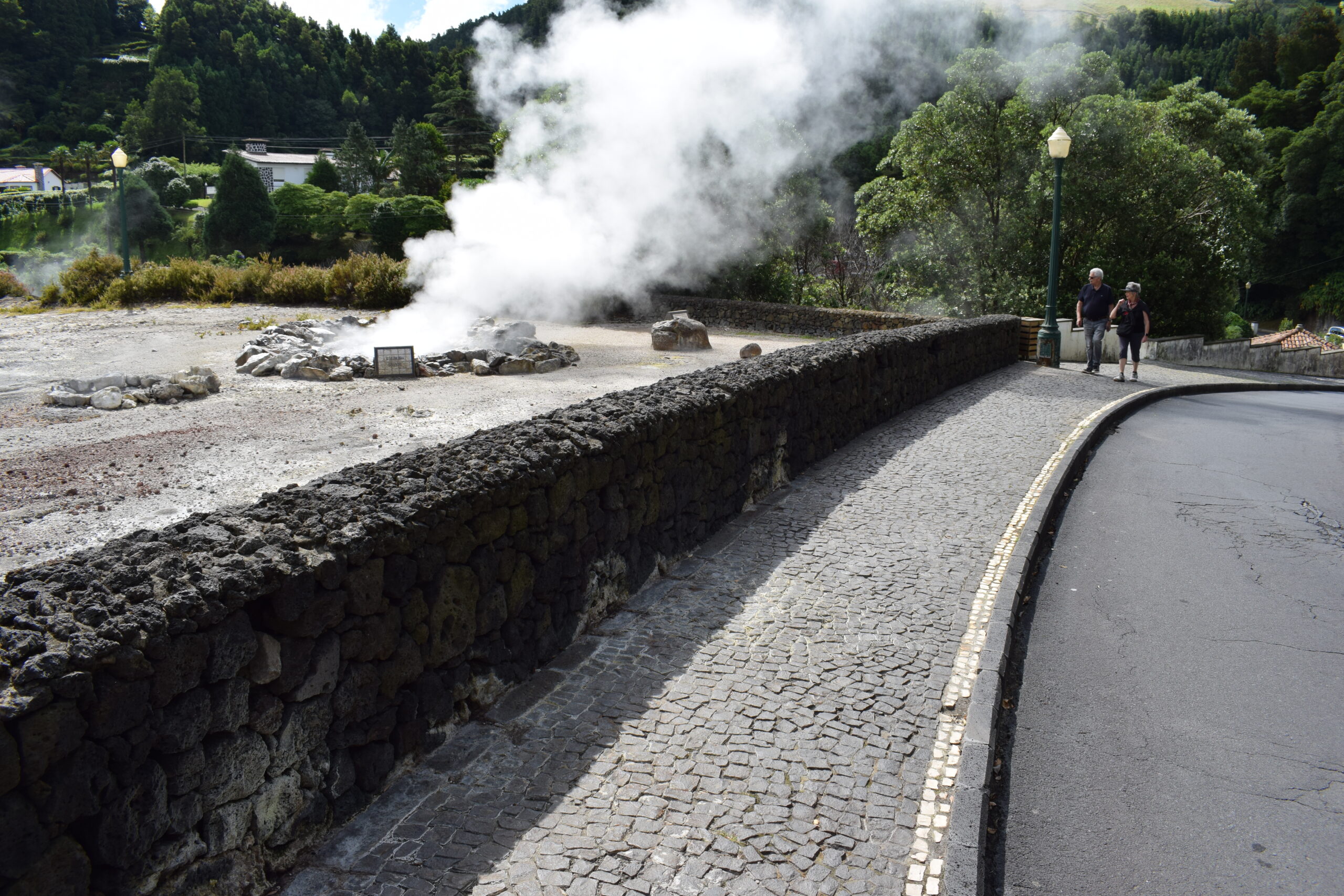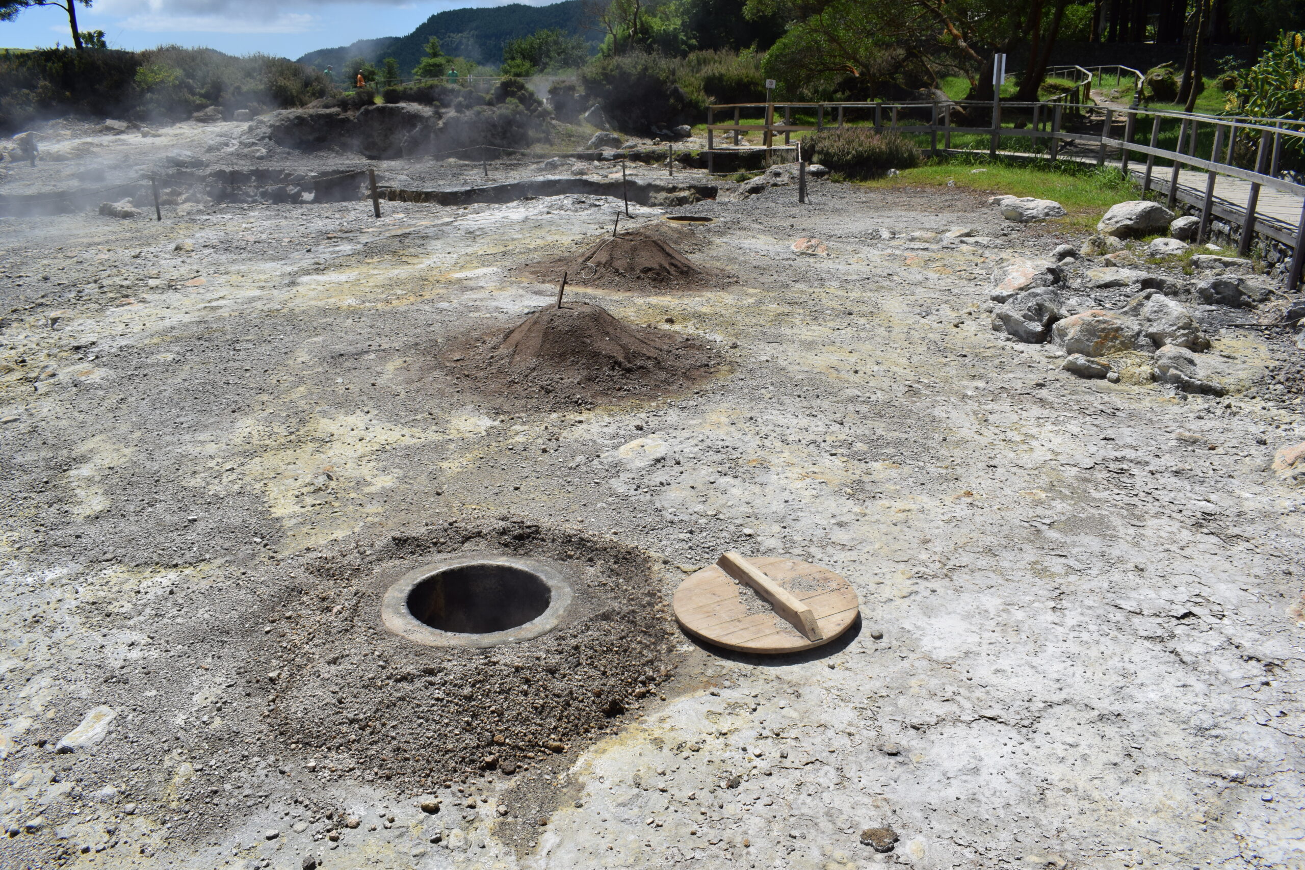 På Azorernes oplevet vi, vulkanske aktivitet på helt tæt hold. Furnas på São Miguel, ligger i et aktivt vulkansområde. Her boblede og kogte jorden flere steder, grundet den aktive vulkan, og der stod damp og røg op fra undergrunden, mens luften tydeligt lugtede af svovl, ret vildt at se i virkeligheden. Vi var også forbi Lagoa das Furnas, hvor man laver den lokale vulkanmad, der er en gryden der bliver gravet ned i jorden og maden bliver så tilberedt langsomt af varmen nedefra. Senere spiste vi vulkanskmad på restaurant, det blev til en stor gang blandet kød- og grøntsagsservering, en meget Azorerne-agtig oplevelse, og en sjov måde at smage naturen store kræfter på Azorerne i Portugal.