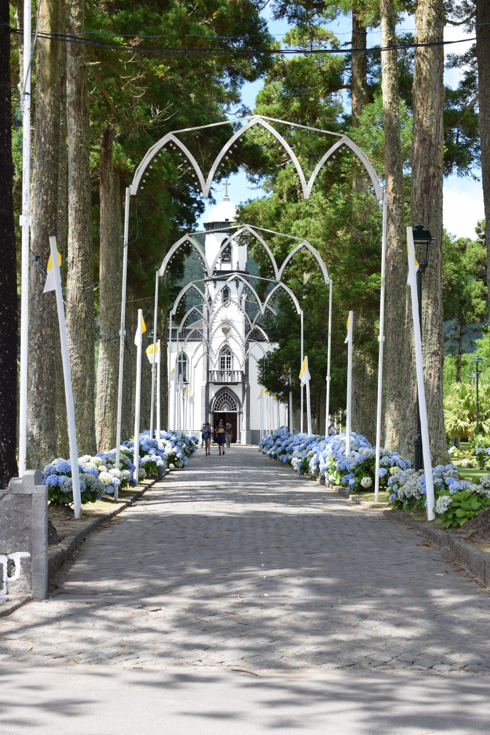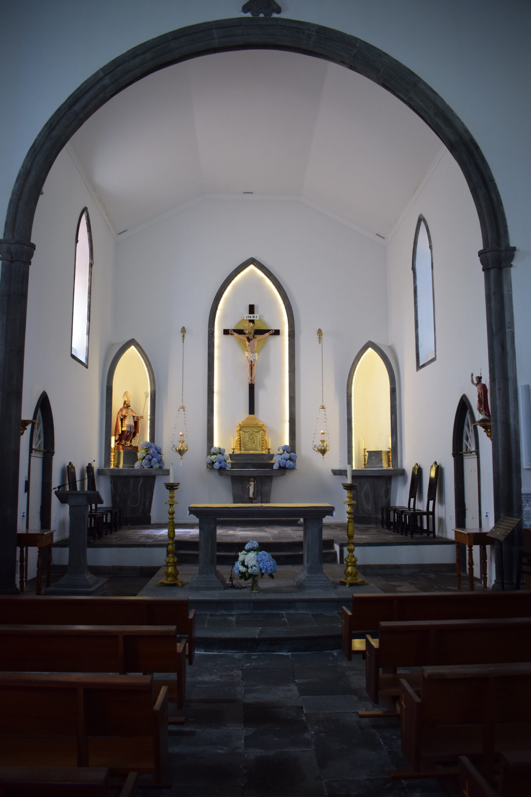 Til sidst har vi lidt blandede små stop, som egentlig siger meget godt noget om Azorerne. Man kan køre en tur, og pludselig dukker der noget op, der er værd at tage en afstikker til. Vi kom bl.a. tilfældigt forbi en lille kirke, som vi lige gik ind i, enkelt og roligt, men med den der særlige stemning, man tit finder i de lokale byer.