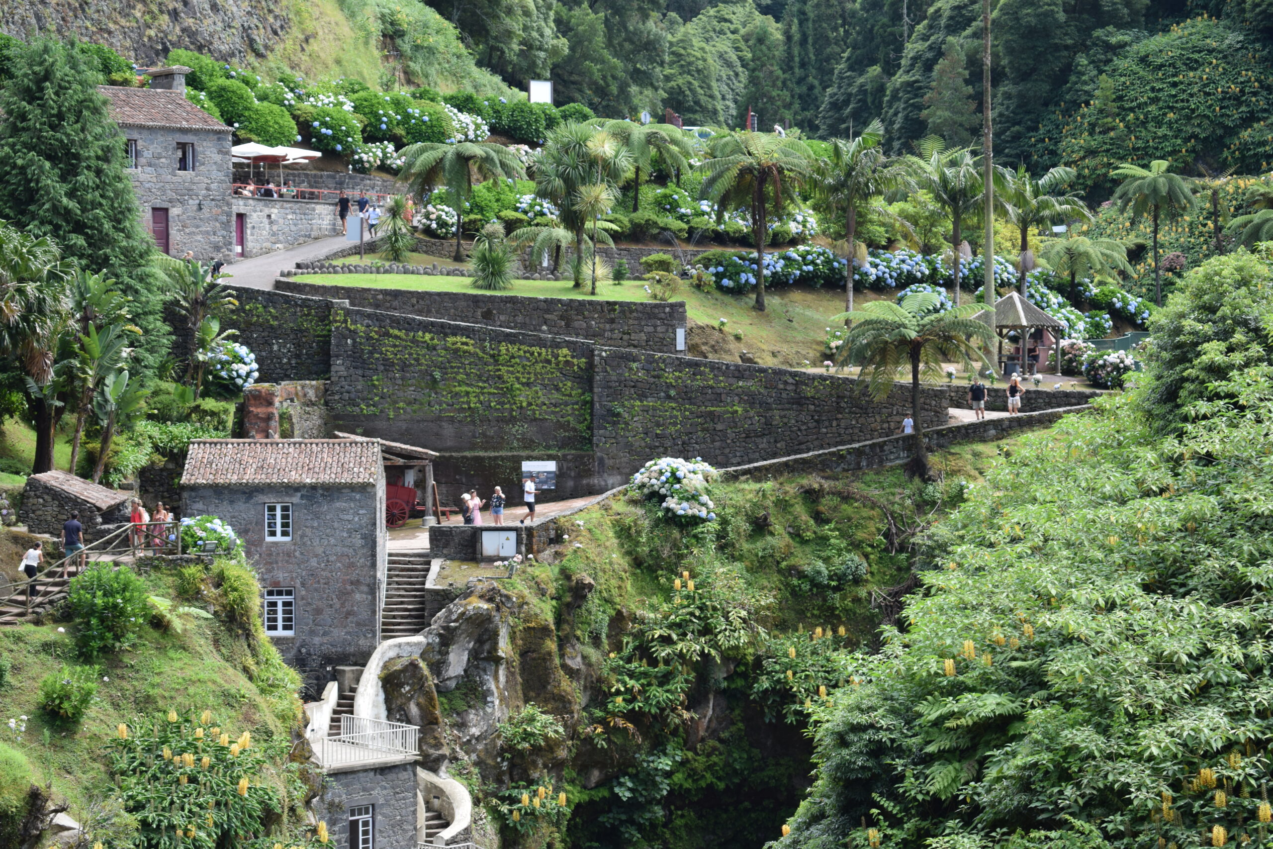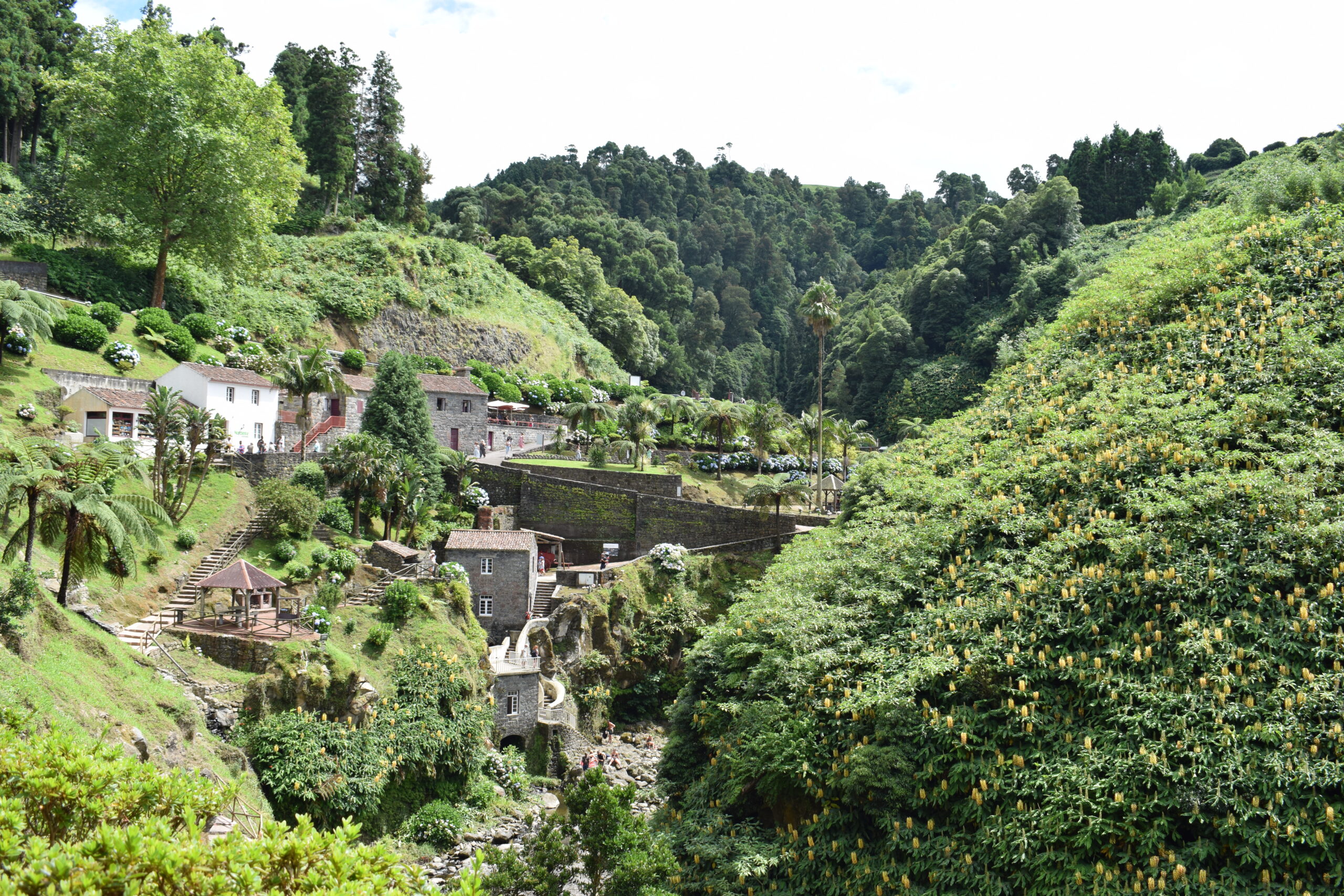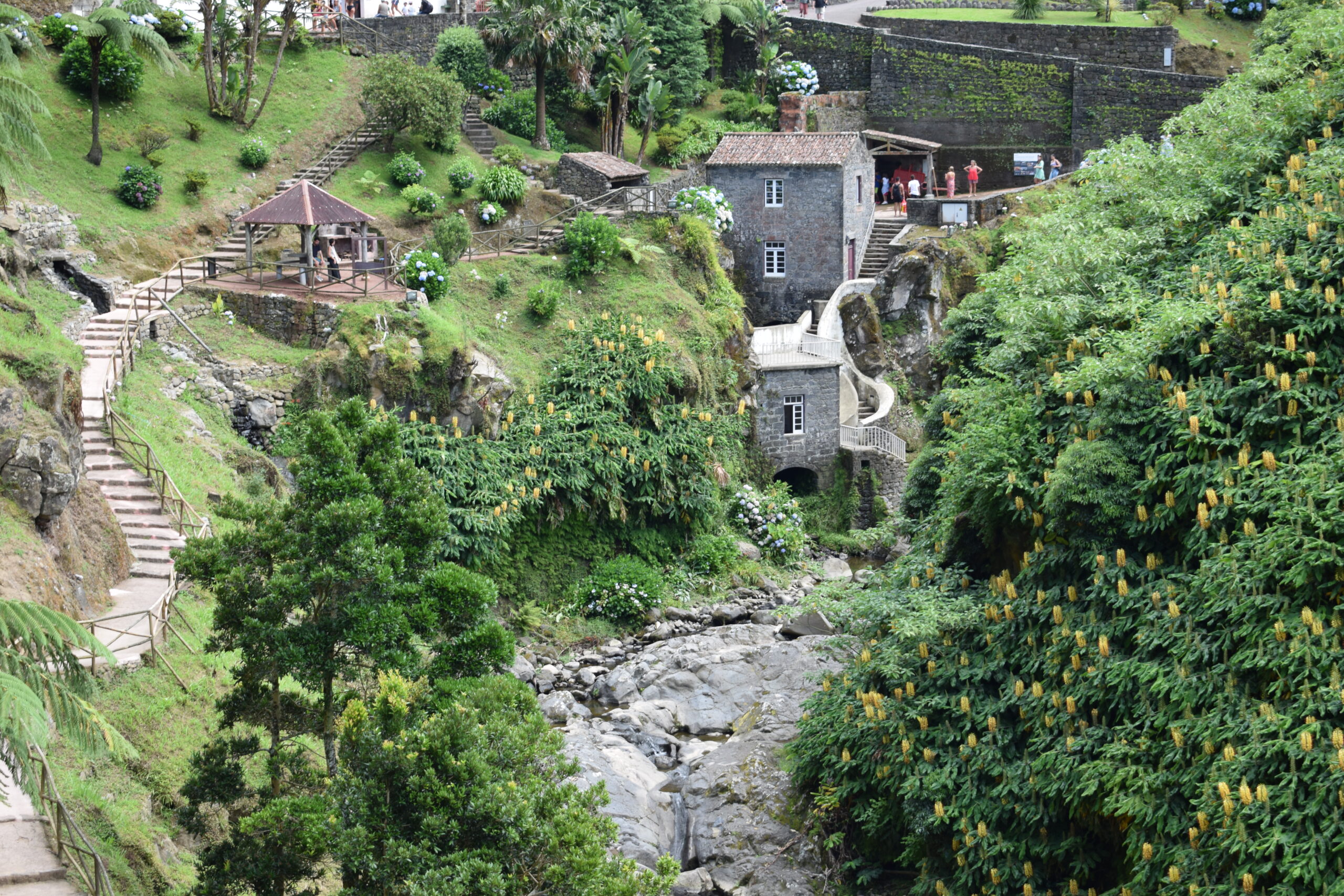 Et af de hyggeligste indslag var den botaniske have, frodig, grøn og fuld af små stier og vandløb, og hvor det store tilløbsstykker er, et stort, naturligt bassin, hvor man kan bade i varmt mineralrigt vand. Det skulle være sundt, og det lugter lidt af svovl, men det er sådan en klassisk Azorerne-oplevelse, hvor naturen fungerer som spa.