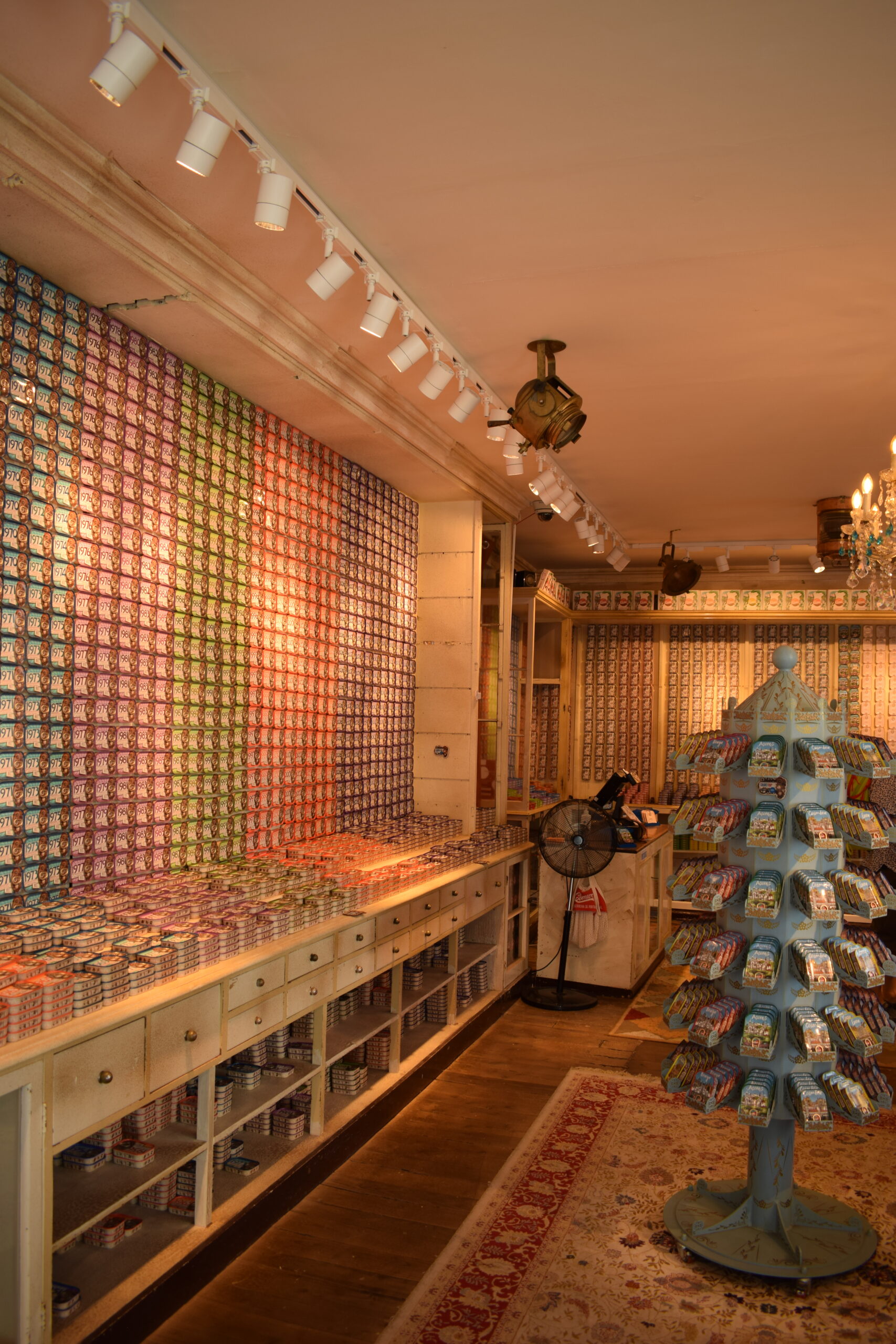 Tilsidst besøgte vi den vildeste “sardin-dåse-butik”, fuld af farver og sjove designs. Ejeren blev helt ekstra stolt, da jeg kaldte ham “Willy Wonka of sardines” og ærligt, det passede virkelig til stemningen i butikken.